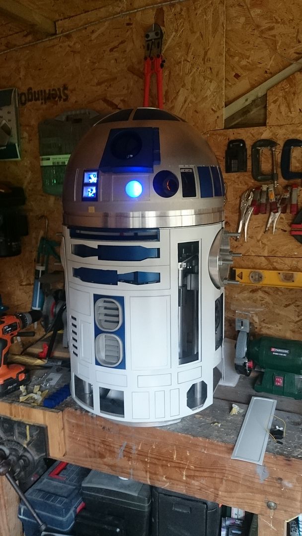 That's right! My very own R2-D2! I've been working on him for just over 2 years and he has gone through a number of changes. He first began as a plastic framed droid with a fibreglass dome. He has now been upgraded to a custom made aluminium frame and is on dome number three. Many of the parts have come from the Astromech.net website and the UK R2 Builders club but I have also custom made lots of parts myself.